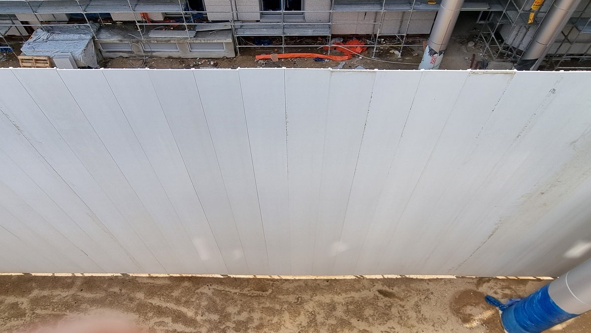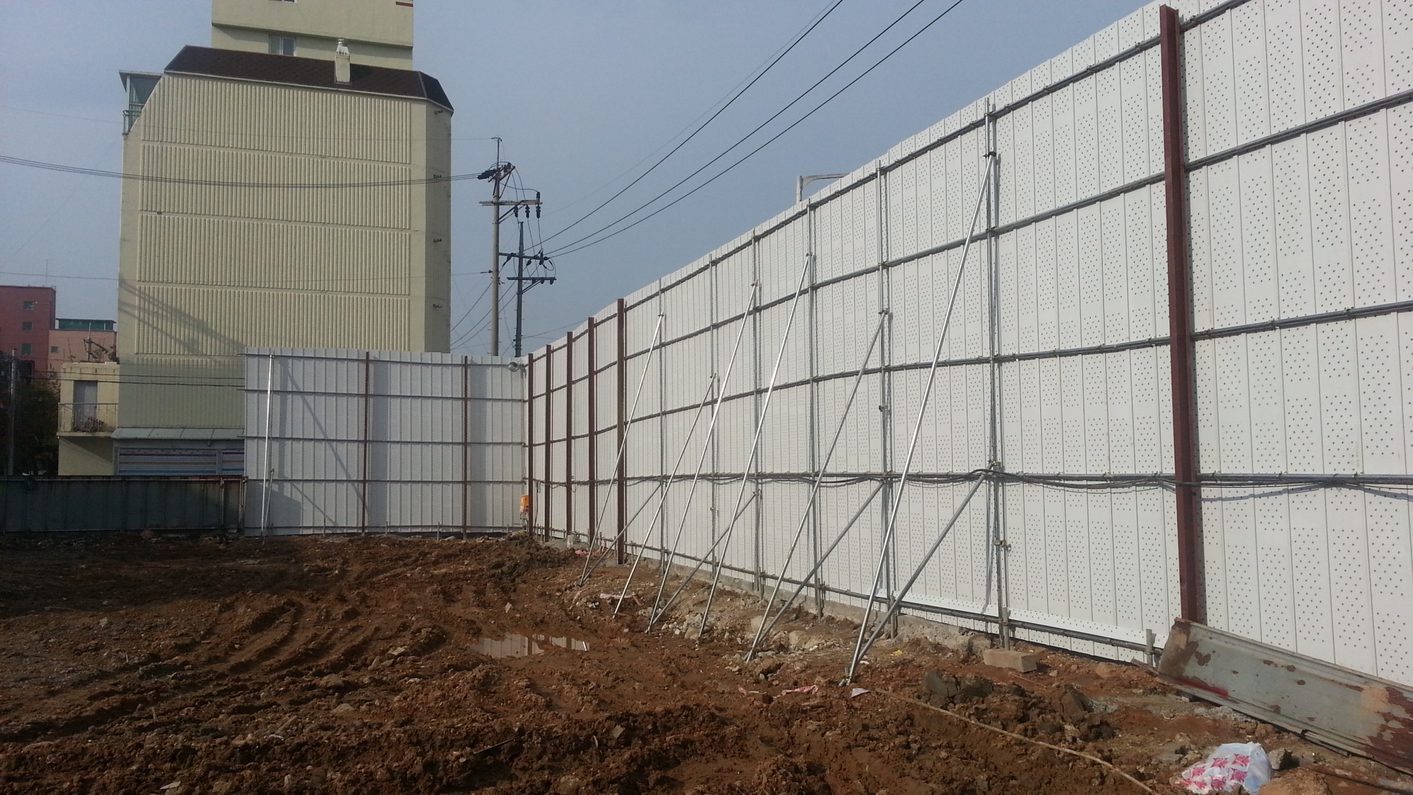 최근에는 재생 플라스틱으로 만든 RPP(Recycling Plastic Panel)를 많이 사용하는데, 기존에는 EGI(Electro Galvanized Iron; 전기아연도금강판) 펜스를 많이 사용했습니다.