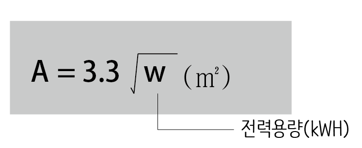 표준품셈에서 동력소 및 변전소의 필요면적 산출은 다음 식을 따릅니다.