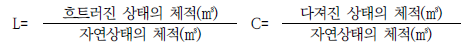 ∙흐트러진 상태의 흙을 자연상태로 만들 경우 --> 1/L