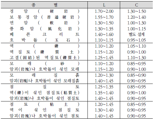 다져진 상태를 기준으로 흐트러진 후의 체적을 구하면 되므로 표에서 C/L 값을 적용할 수 있습니다.