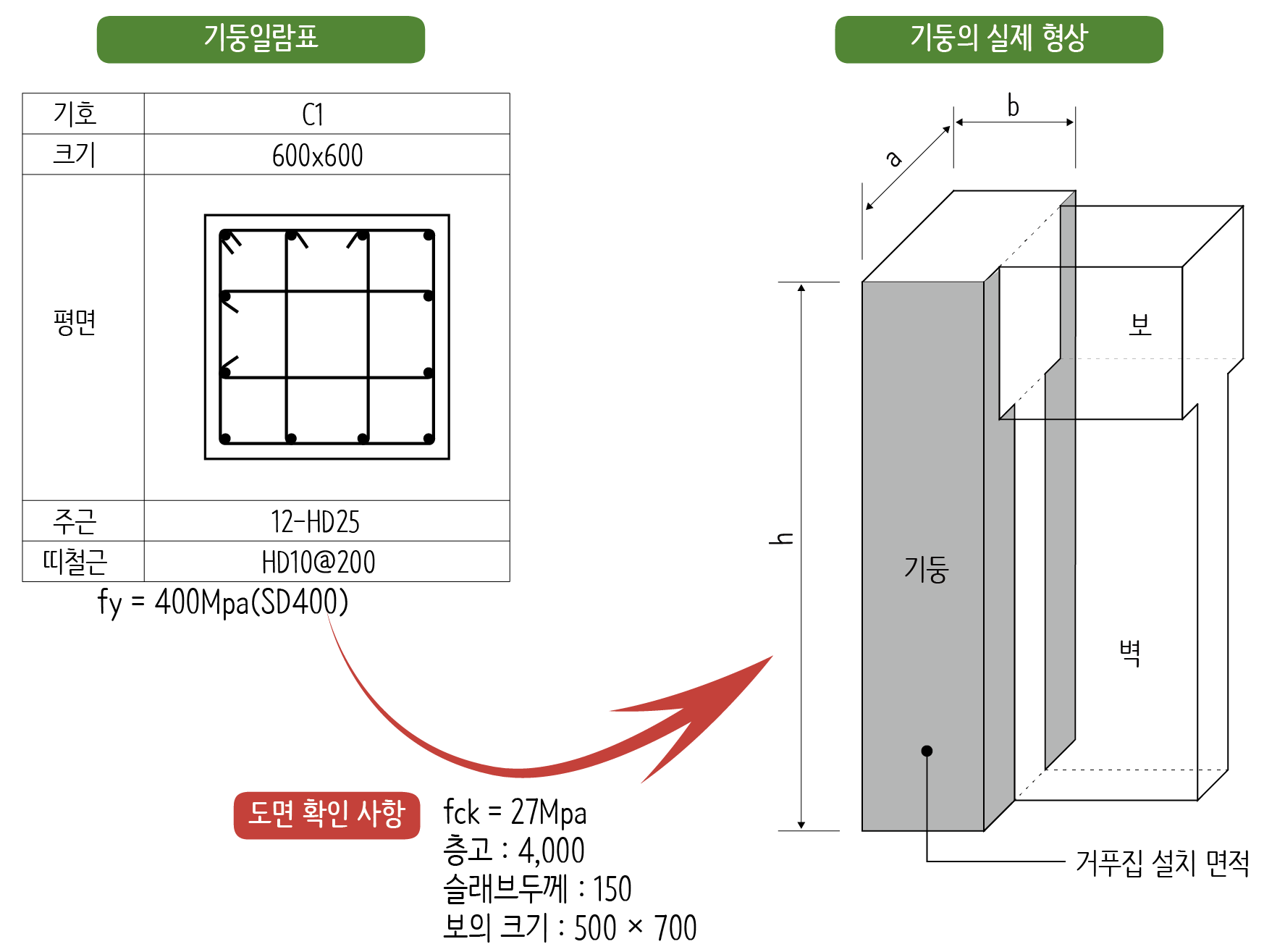 ▶ [철근콘크리트공사] - 기둥 철근콘크리트 수량 산출