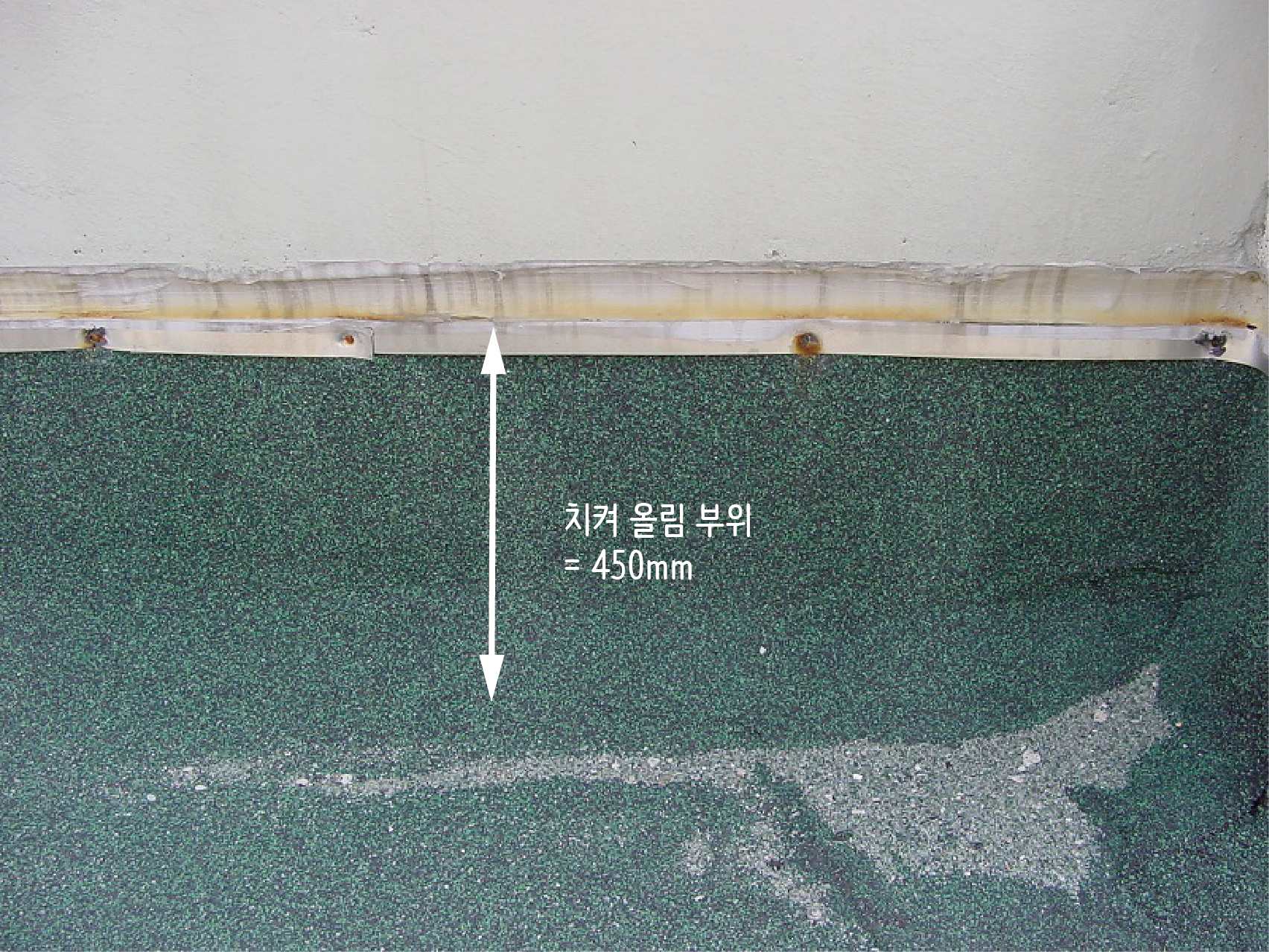 방수층을 수직으로 감아올렸다면(보통 450mm) 끝부분에 물이 침투하지 않도록 코킹작업을 하게 됩니다. 따라서 수량은 방수면 끝부분의 길이로 산출합니다.