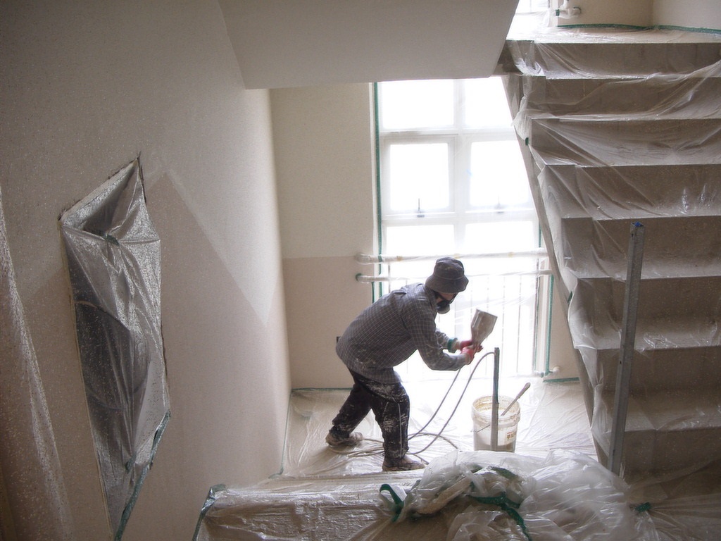 수성페인트는 주로 모르타르 바탕에 적용합니다. 공동주택이라면 외부에서는 외부벽면, 내부에서는 발코니 및 계단실 같은 공용공간에 적용하는데, 내부와 외부를 구분해서 산출합니다.