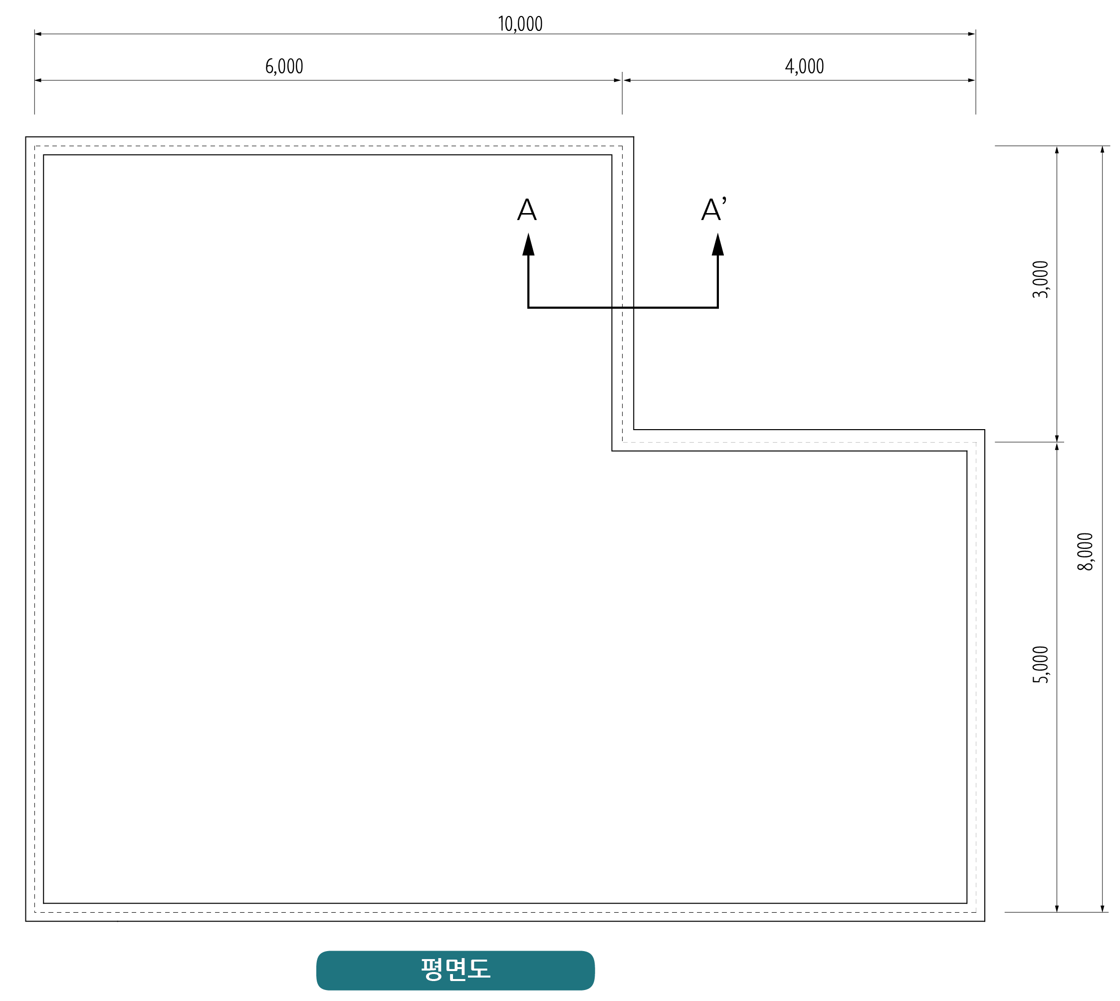 다음 도면을 보고 옥상의 방수면적(m²), 누름콘크리트량(m³), 보호벽돌량(매)를 산출하시오. (단, 벽돌은 표준형벽돌로 함)