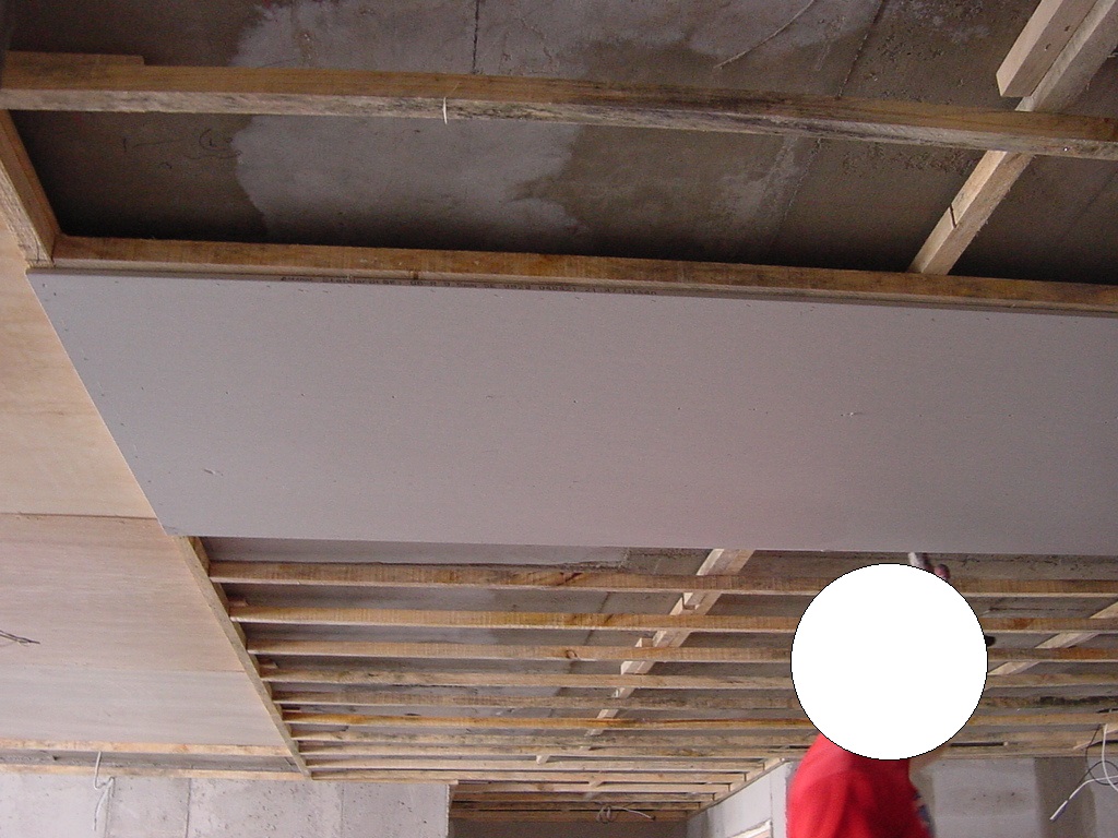 일반적인 건물에서는 석고와 시멘트를 혼합해서 만든 텍스라는 재료를 많이 쓰는데 흡음성과 단열성, 내화성이 있습니다. 보통 두께가 6, 9, 12, 15 mm 정도에 크기는 300 × 600 mm이나 600 × 600 mm 정도를 많이 씁니다.
