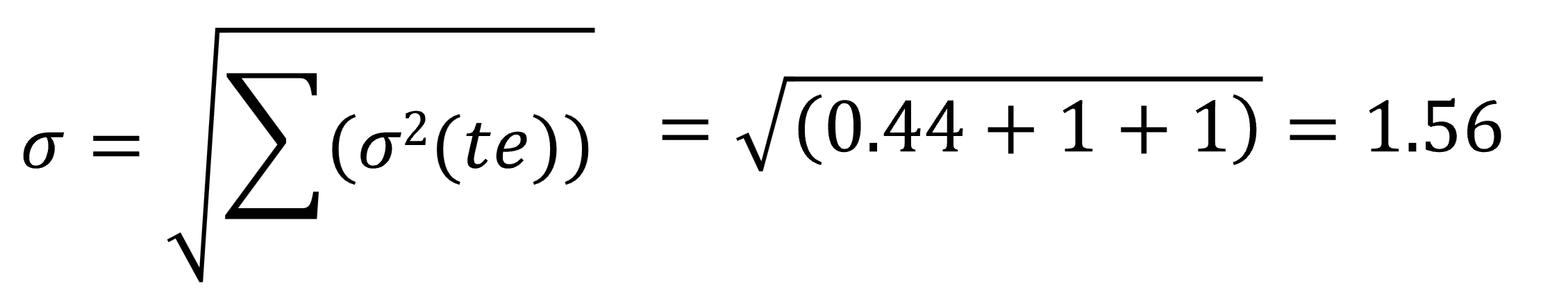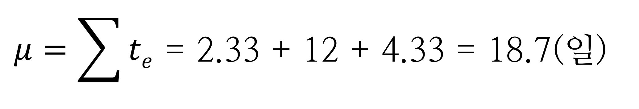 그럼 전체 프로젝트의 완수가능성은 어떻게 될까요? 이 완수가능성을 계산하려면 주공정선의 합계와 분산이 필요합니다. 각각 다음과 같이 계산할 수 있습니다.
