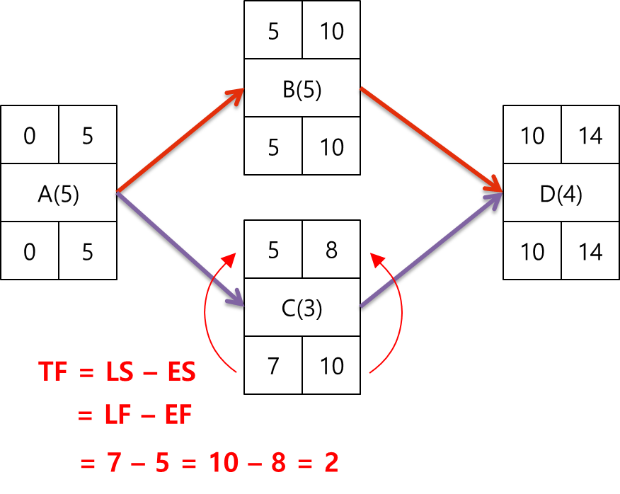 그 작업의 LF에서 EF를 빼거나, LS에서 ES를 뺀 값으로 구할 수 있는데, 그림에서 본다면 아래쪽 값에서 윗쪽값을 뺀 것입니다.
